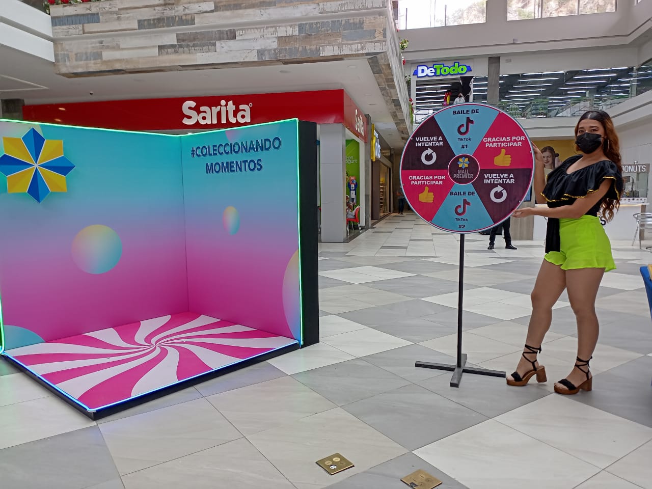 En esta ocasión La Ruleta Regalona brindó tres opciones a los consumidores para concursar: La primera gracias por participar, la segunda vuelve a intentar y la tercera elección más divertida bailando uno de los trends de la temporada o el Challengue Premier de la plataforma Tik Tok, de esta manera se vivió un ambiente alegre y ameno, que llenó de mucha emoción a las personas que visitaron el centro comercial el fin de semana.