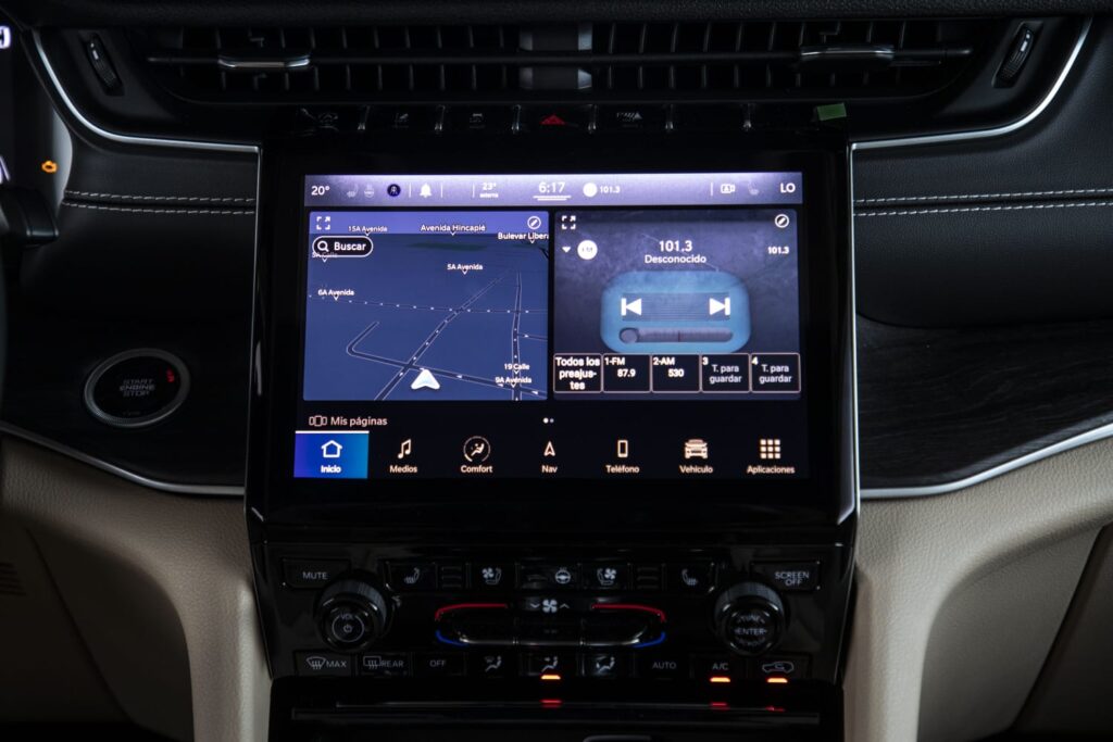 - Un Sistema Uconnect 5 con pantalla táctil de 10.1”, conectividad simultánea de dos teléfonos, sistema de navegación avanzado.