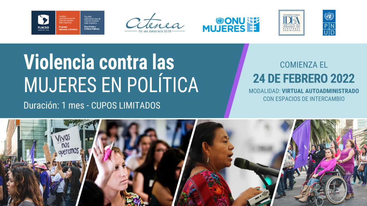 • Violencia contra las mujeres en política: Este curso busca contribuir a la identificación y abordaje de la violencia contra las mujeres en política, y fortalecer el conocimiento sobre los derechos políticos de las mujeres que participan en diferentes ámbitos y niveles de la vida política y pública en América Latina.