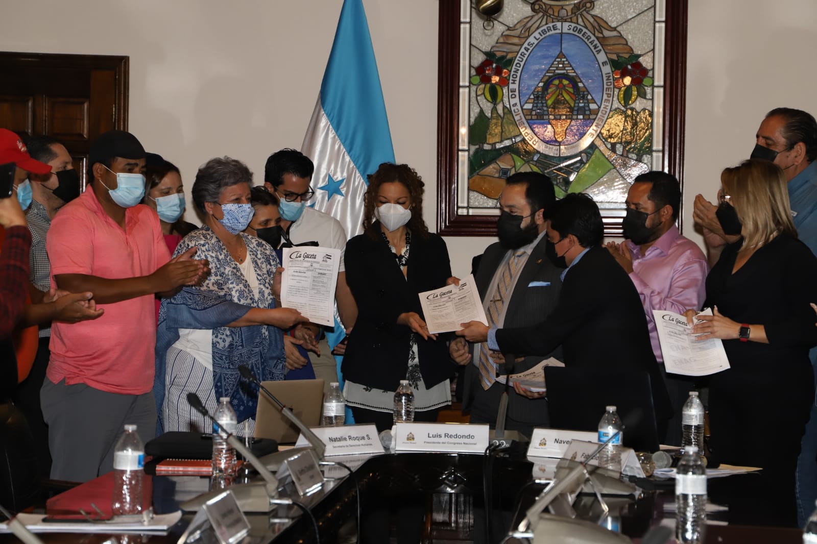 A la reunión asistieron representantes de Mineras de Derechos Humanos; la coordinadora del Comité de Familiares de Detenidos Desaparecidos en Honduras (COFADEH) Bertha Oliva, el Consejo Indígena de Francisco Morazán, el Consejo Indígena Lenca de Reitoca y de estudiantes de la Universidad Nacional Autónoma de Honduras. También estuvo la ministra de Derechos Humanos, Natalie Roque.