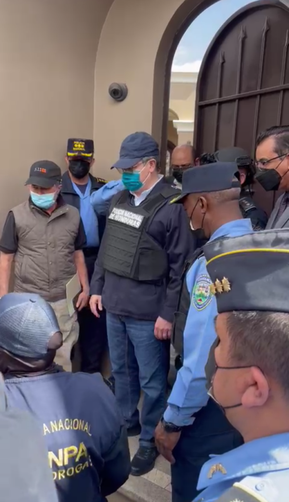 Actuando en nombre del Estado de Honduras y obedeciendo a la presidenta Xiomara Castro en ejercer el estricto cumplimiento de la ley, se ha procedido a dar captura al expresidente Juan Orlando Hernández, leyó en un comunicado el Jefe de la Policía Nacional.