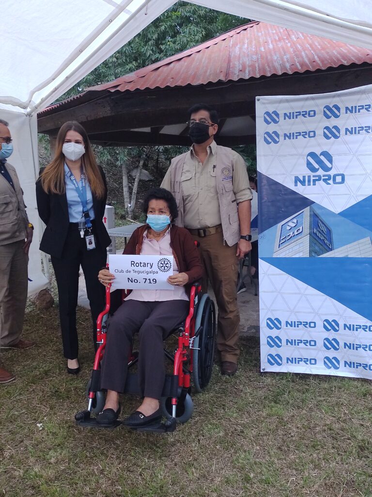 El Club Rotario de Tegucigalpa a solicitud de Nipro Medical Honduras, entregó éste Martes un total de 43 sillas de ruedas, a pacientes renales de las salas de Diálisis del Instituto Hondureño de Seguridad Social (IHSS) y de igual manera, a personas que atienden su tratamiento en Diálisis de Honduras, donación que se llevó a cabo en las instalaciones de este organismo en colonia La Hacienda, Tegucigalpa.