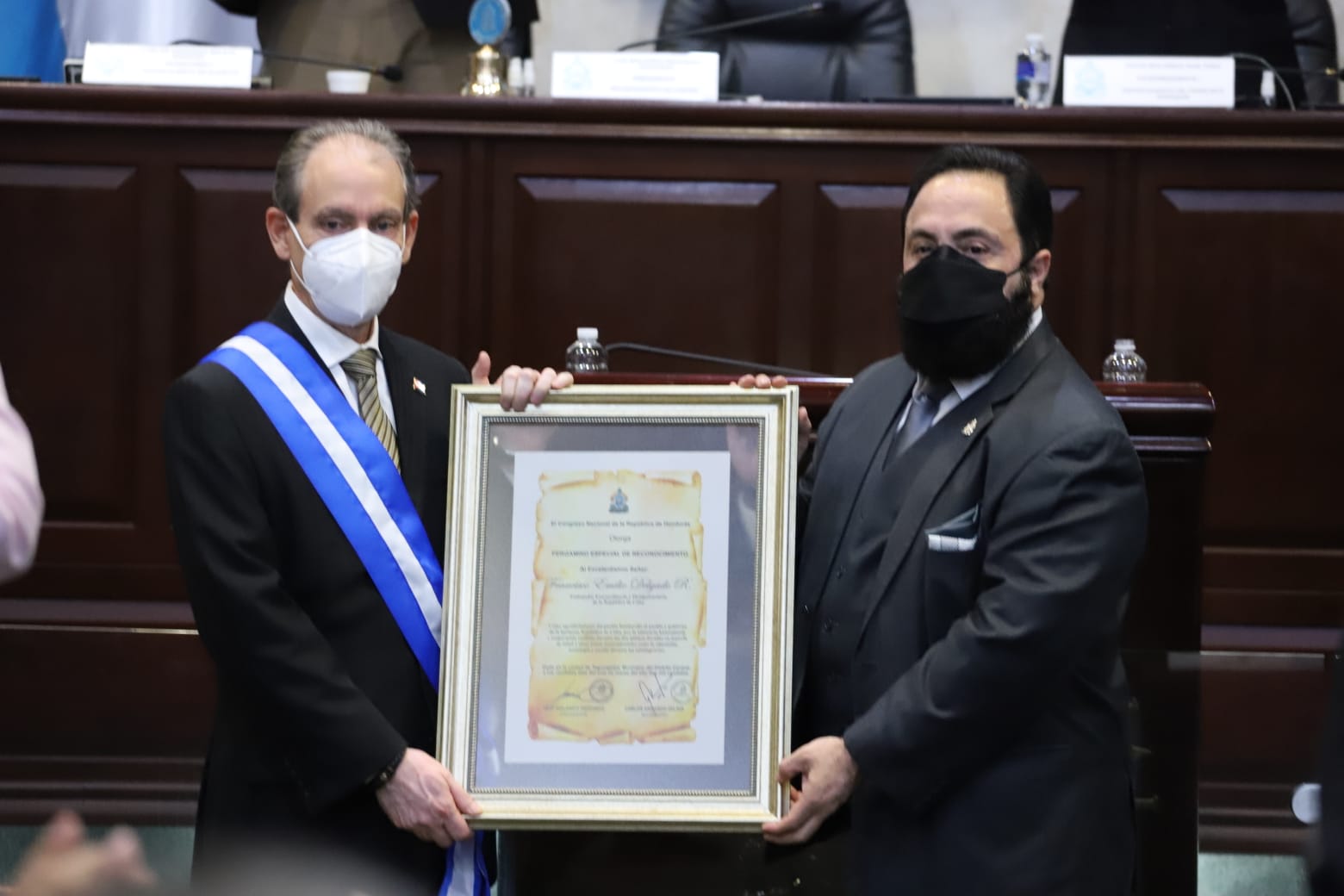 En ocasión al reconocimiento de los históricos lazos de hermandad, el Congreso Nacional en una sesión solemne entregó la “Gran Cruz con Placa de Oro y Pergamino Especial”, al embajador de la República de Cuba en Honduras, Francisco Emilio Delgado.