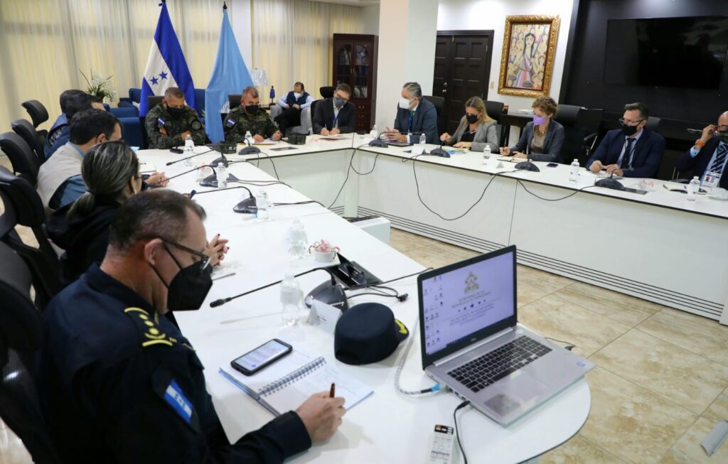 Shackelford se reunió hoy, con el canciller Lisandro Rosales y los respectivos ministros de la Secretaría de Coordinación General de Gobierno (SCGG), Carlos Madero; de la Secretaría de Derechos Humanos, Iris Rosalía Cruz; de Defensa, Fredy Santiago Díaz Zelaya; de Seguridad, Julián Pacheco.