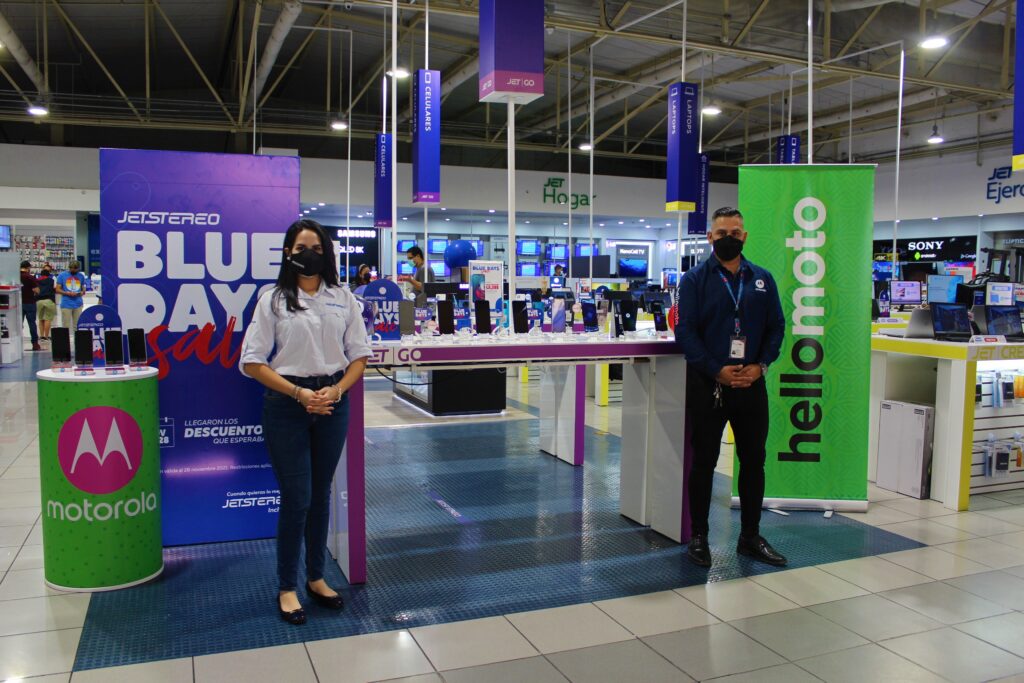 22 de noviembre 2021- En el marco de los grandes descuentos que Jetstereo trae para todos sus clientes en su Blue Day Sale, Ejecutivos de Motorola anunciaron los grandes beneficios que podrán obtener al adquirir uno de sus modelos de celulares hasta el 28 de Noviembre, en todas las sucursales de Jetstereo a nivel nacional.