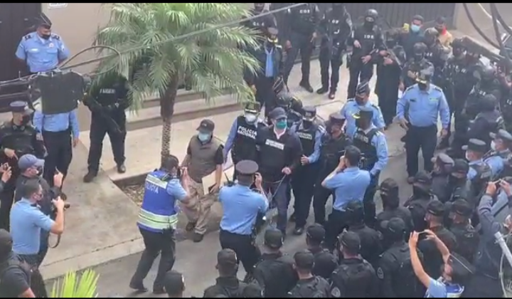 Vestido de jeans, camisa azul, gorra y chaleco antibalas, fue capturado en su residencia hoy en horas de la tarde, el expresidente Juan Orlando Hernández, quien...